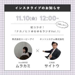今週の金曜日12時~ インスタライブ(@netsystemkouhou) ぜひご覧ください!