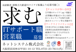 詳細はマイナビ転職にて「ネットシステム 富田林」と検索してみてください!