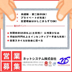 詳細はマイナビ転職「ネットシステム 富田林」で検索🔍