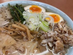 贅沢に煮卵がトッピングでついたラーメンを注文しました。