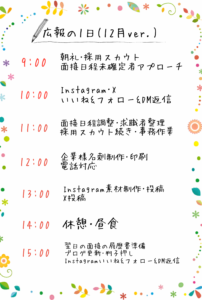 他の企業様の広報やInstagramの中の人はどのように1日を過ごされているのか気になります。。。