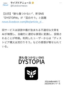 おととい新たなSNS「DYSTOPIA」がリリースされましたね!
