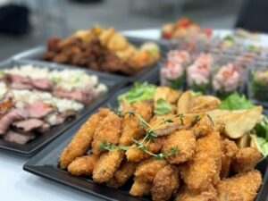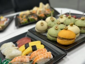 お寿司、揚げ物、ローストビーフ、スイーツまで場面にあったケータリングをご用意いただき試食!