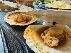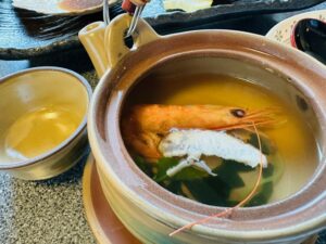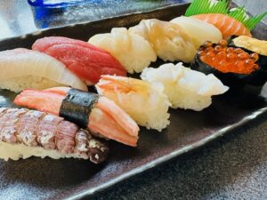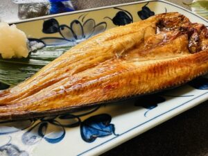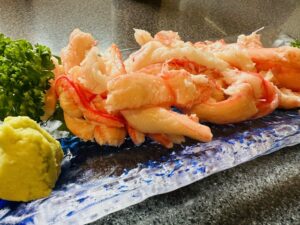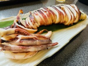 お寿司、カニのむき身、焼き物(ほっけ/イカ/ホタテ)、土瓶蒸しに加えて店名物の”魚真焼き”を食べました!