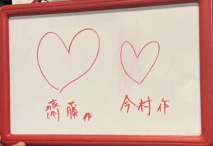 描き慣れていない広報の齋藤、今村のハートは2枚目です♡