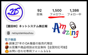 弊社のInstagram(@netsystemkouhou)のフォロワー様が1500人を達成しました!